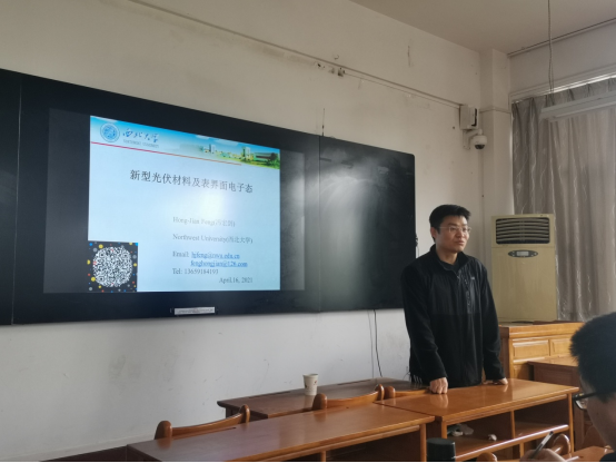 4月16日上午,9728太阳集团柔性引进人才——西北大学博士生导师冯宏剑教授在2417教室举办题为“新型光伏材料及表面电子态”的专题讲座。学院60余位师生参加本次讲座。