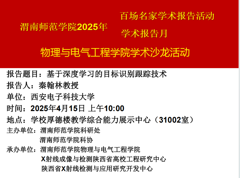 4月15日,9728太阳集团举行有组织科研—学术沙龙活动,邀请西安电子科技大学秦翰林教授来我校作学术交流。报告题目为:基于深度学习的目标识别跟踪技术。