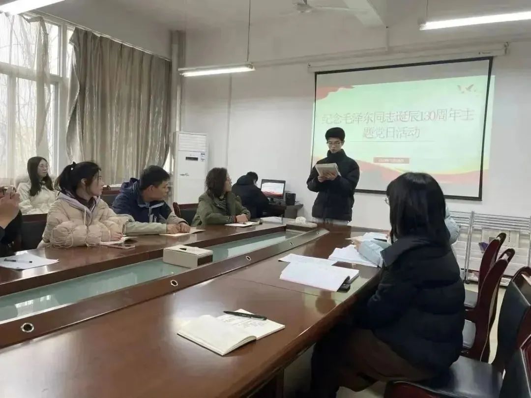 2023年12月26日是伟大领袖毛泽东同志诞辰130周年纪念日。为深入学习贯彻习近平新时代中国特色社会主义思想和党的二十大精神,缅怀毛泽东同志的卓越功勋和崇高风范,12月28日下午,第四学生党支部组织开展“纪念毛泽东同志诞辰130周年”主题党日活动,会议由党支部书记张静雯主持。