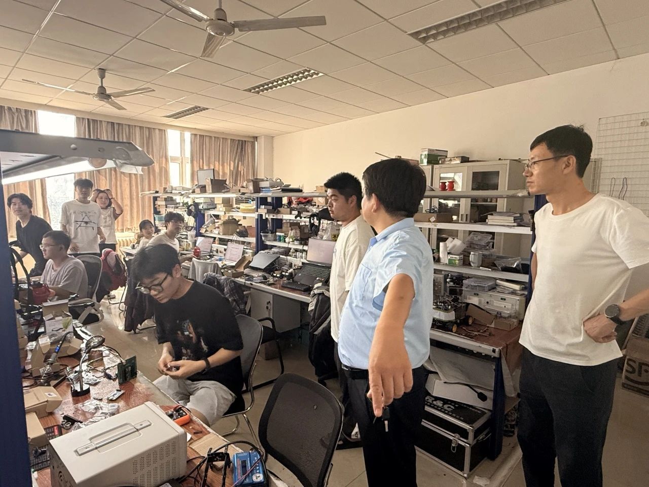 会后,学院领导带队走访慰问备战学科竞赛的学生团队,详细询问同学们的备赛进展与生活情况,仔细检查实验设备安全运行状况,叮嘱同学们劳逸结合,严守竞赛规范,争创佳绩。