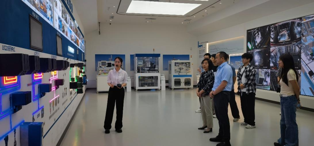 抵达基地后,北京和利时智能技术有限公司教育拓展部销售经理王鹏刚、汽车行业部总经理王辉热情接待了太阳成tyc9728集团一行,并带领太阳成tyc9728集团一行参观了公司展厅、智能工厂、实验室及研究院测试中心。在展厅,王鹏刚详细介绍了和利时集团的发展历程、核心技术以及在工业自动化、轨道交通、智能交通等领域取得的卓越成就。通过丰富的实物展示、多媒体演示,一行人对和利时的技术实力与创新成果有了直观且全面地认识。