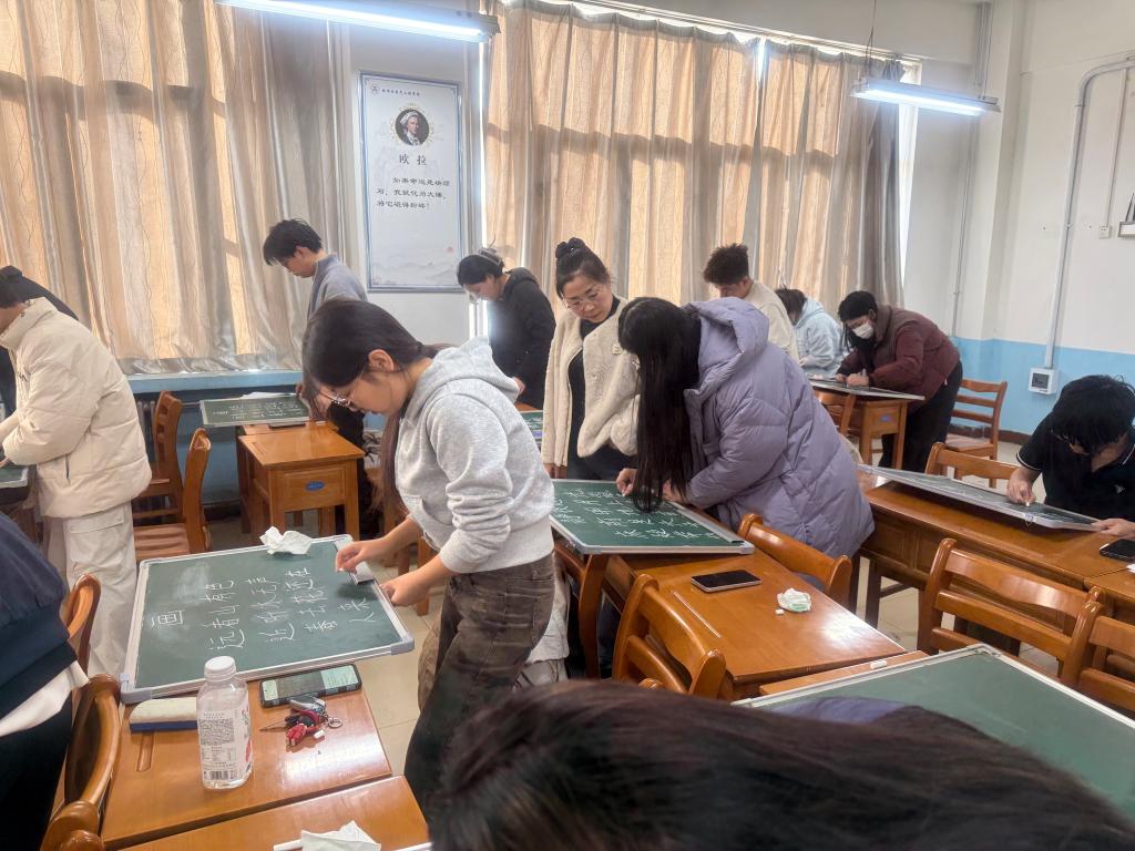 经严格评审,一批优秀作品脱颖而出,并在全院范围内展示。所有参与测试的同学均顺利通过考核。本次活动不仅有效提升了学生的粉笔字书写能力,也进一步增强了他们对教师职业的认同感和使命感。相信在未来的教学岗位上,他们必将以扎实的专业素养,为培养更多优秀人才贡献智慧和力量。