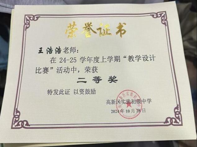 我院6位实习生踊跃的参加高新区实验初级中学实习生教案书写大赛,并获奖。